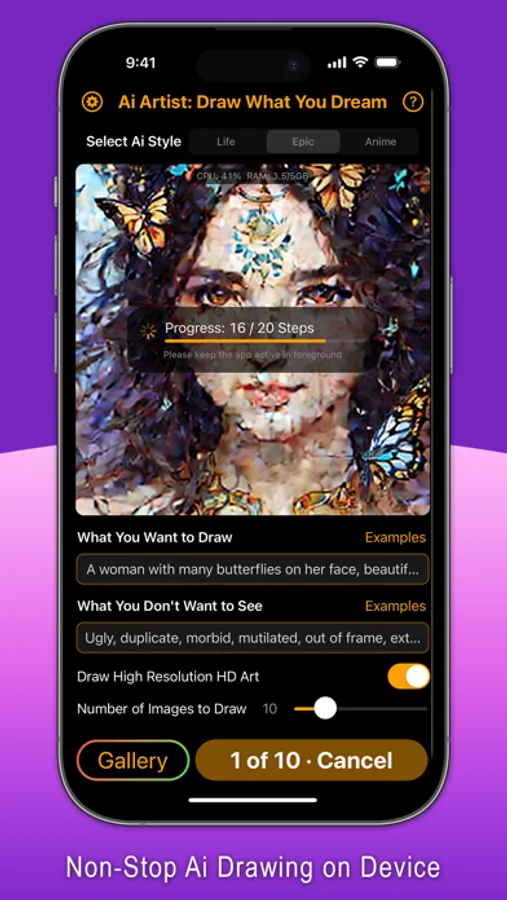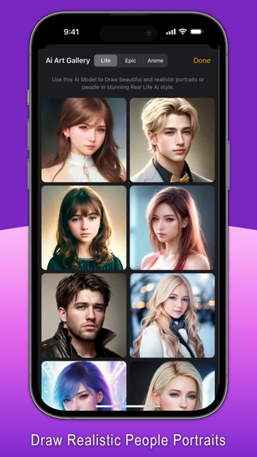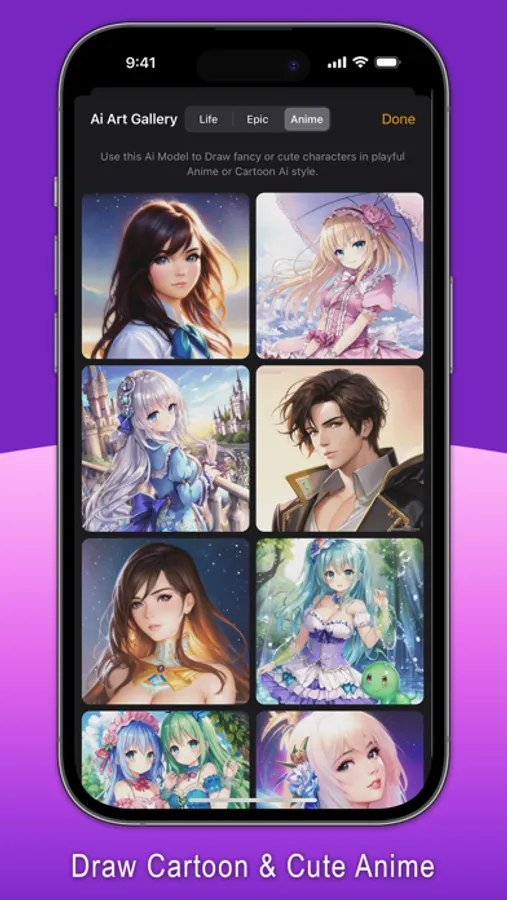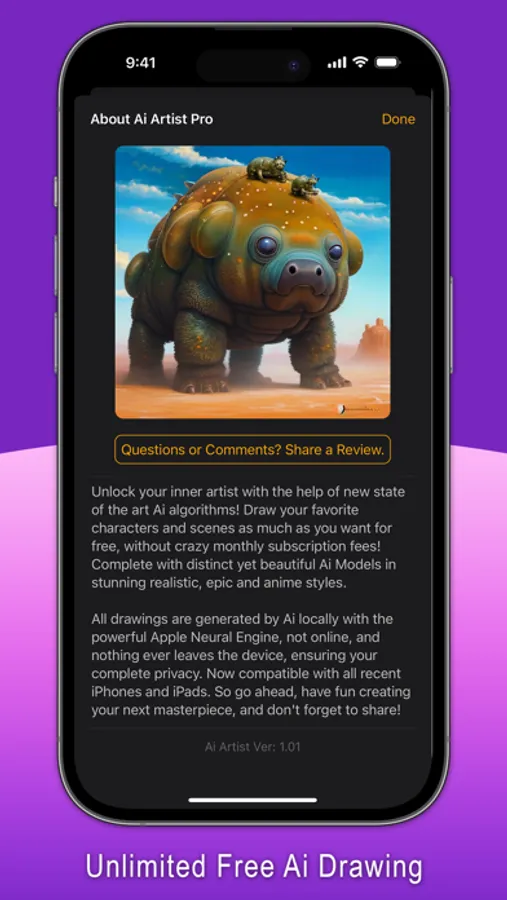 Complete with distinct yet beautiful Ai Models in stunning realistic, epic and anime styles. All drawings are generated by Ai locally with the powerful Apple Neural Engine, not online, and nothing ever leaves the device, ensuring your complete privacy.