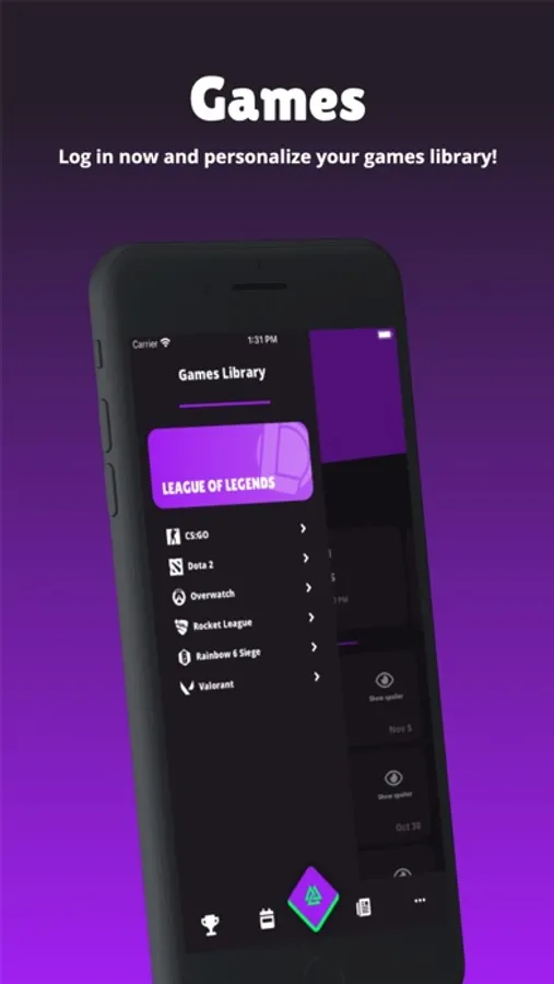 • Simple and friendly application interface and universal languages to ease your esports consumption
