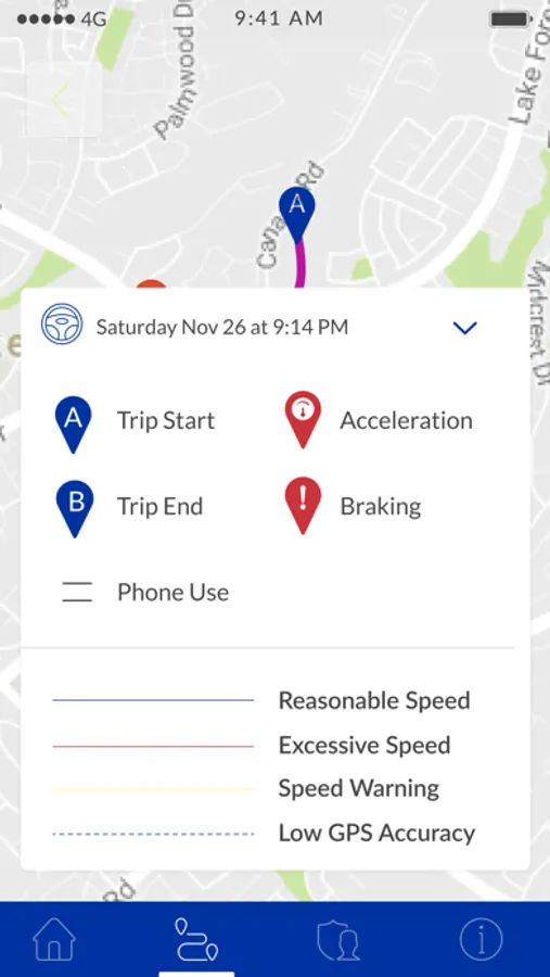 Great Driver’s powerful analytics evaluate how smoothly you accelerate, brake, and corner; whether you use your phone and/or drive above the posted limits; and the time of day you drive.