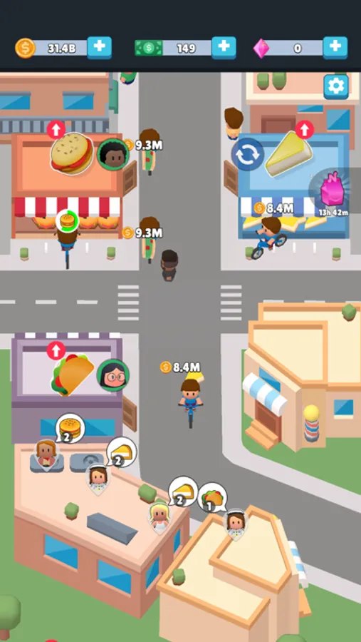 As you complete daily challenges and unlock new items, you can assign managers to your restaurants and make them stand out in the city. You'll be able to experiment with different cuisines, decor and services to find out what your customers love the most. Watch your empire grow as you become the ultimate restaurant tycoon in Nice City Idle Shop Simulator! With the ability to manage multiple restaurants at once, the possibilities are endless. As you progress through the game, you'll unlock new districts and new cities to expand your culinary empire.