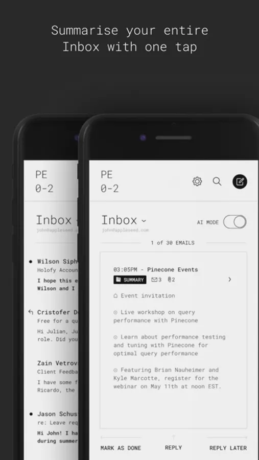 Join us on the journey to tackle business communications head-on, harness the latest in AI technology, and package it all in a professional, user-friendly, and enjoyable platform. With PE-02, we’re not just reimagining email - we're transforming it.
