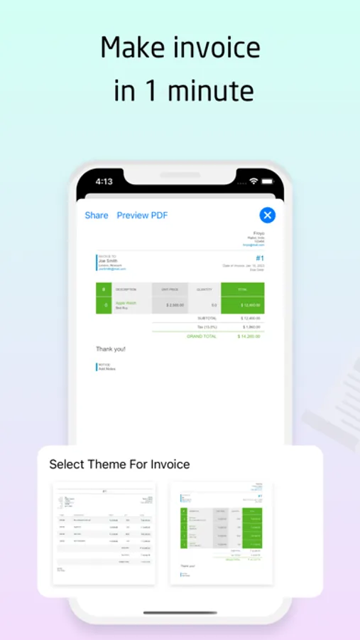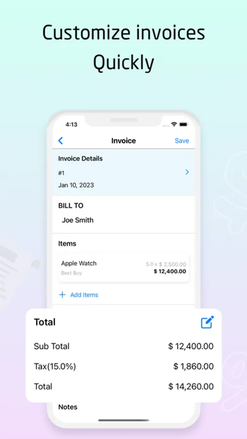 With Quick Invoice Generator can add or edit the Customer details for the invoice.