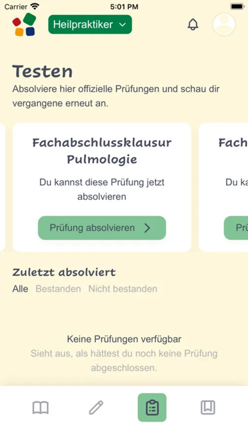 - Für den großen HP: Nach Abschluss jedes Faches gibt es eine Klausur die in der App geschrieben werden kann inkl. Kommentaren zur Lösung