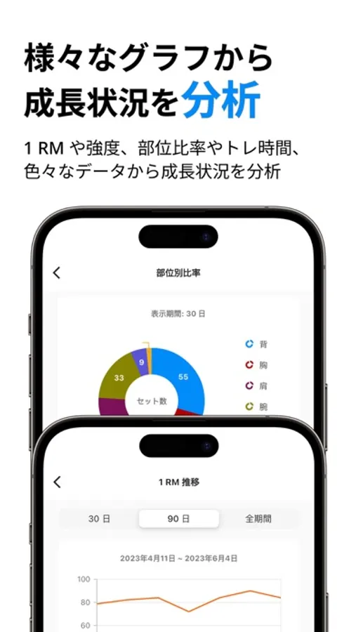 手書きのトレーニングノートを置き換えることは勿論、データをグラフやカレンダーで可視化して、成長を観察しよう。