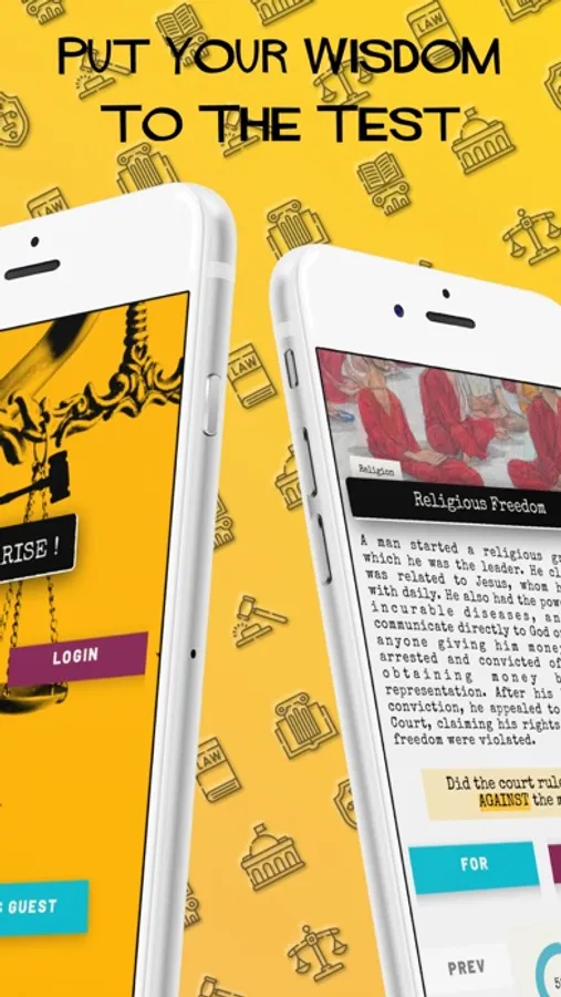 Step into the world of legal intrigue and challenge your wisdom & judgment with our app!