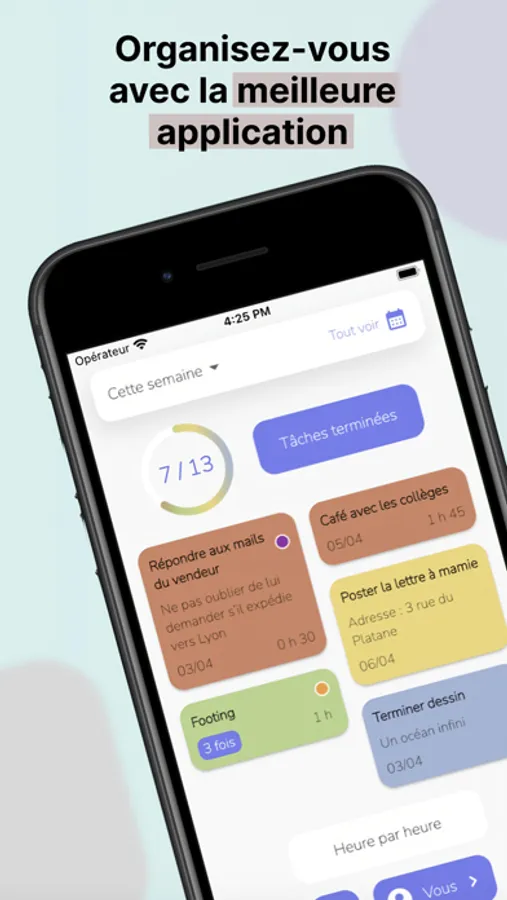 • Laissez l'application vous créer automatiquement un planning idéal, qui respecte vos priorités et vos temps de repos.
