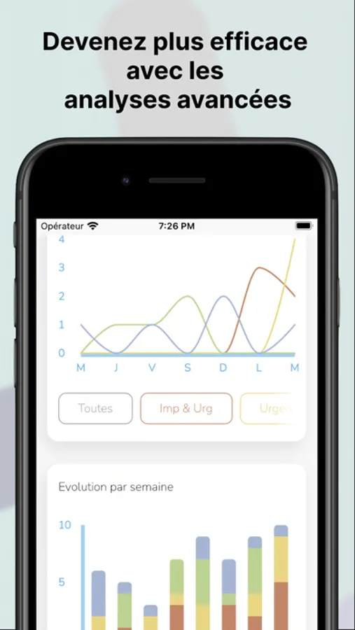 • Visualisez vos statistiques : évolutions des tâches terminées par jour, par semaine, durée moyenne de vos timers...