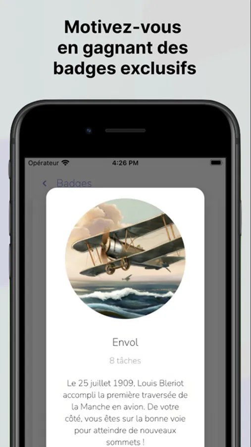 • Gagnez des badges uniques lorsque le nombre de tâches que vous avez accompli atteint certains paliers.