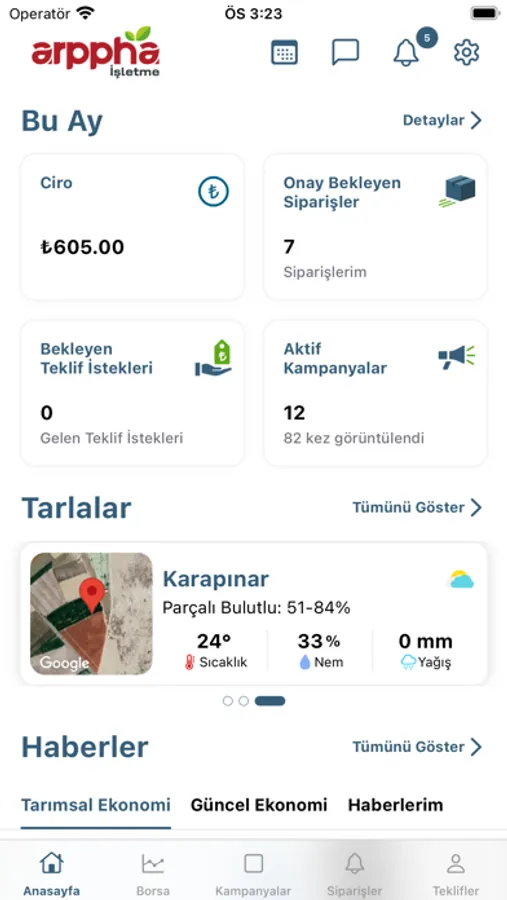 - Çiftçilerden gelen satın alma tekliflerini görebileceksiniz.