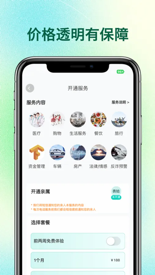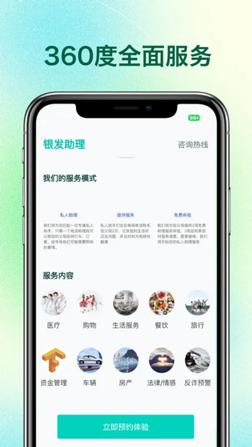 我们的服务内容有:健康顾问、购物咨询、生活服务、餐饮、旅行、资金管理、车辆、房产、法律/情感、反诈预警等重要的需求。