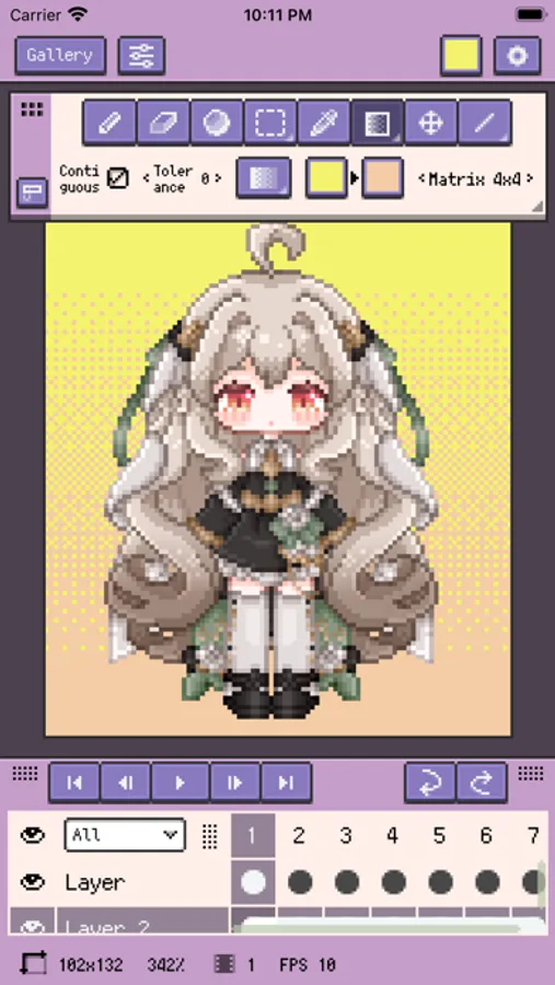 Resprite provides a powerful set of pixel art editing tools, an advanced layer and timeline system, and a high-performance rendering engine, which can help you create fascinating pixel art, exquisite spritesheet, charming GIFs and wonderful game art resources.