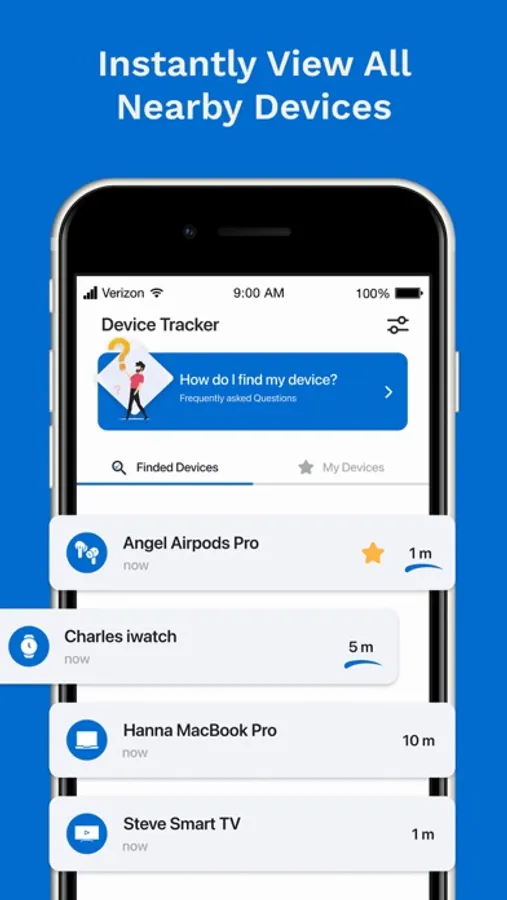 • Device Radar shows the bluetooth devices near you in real time.