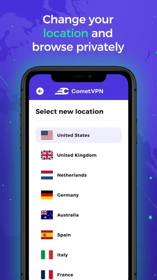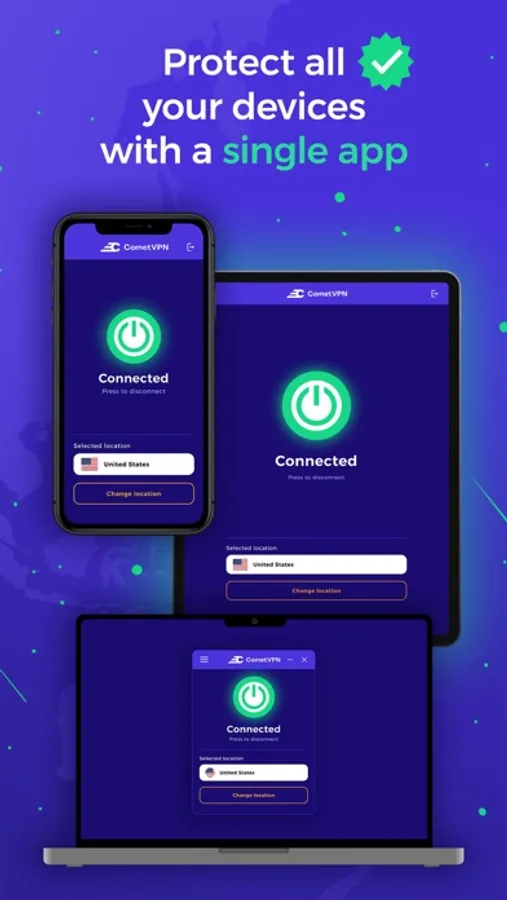Staying safe online is a growing concern. Whether you need to keep your activity private or access geo-restricted content - CometVPN has you covered. With a single tap, you get 100% private and secure internet access!
