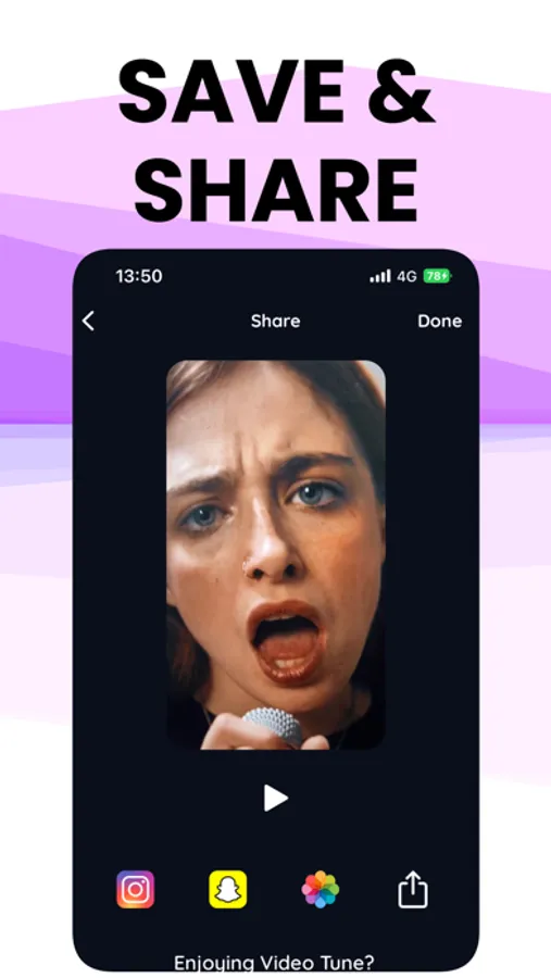 Are you ready to sing like a pro and impress your friends? With Video Tune, you can easily record videos of yourself while automatically tuning your voice to the perfect pitch. It's like having your own personal recording studio in your pocket! And the best part? You can share your awesome videos on TikTok, Instagram, and other social media platforms. So why wait? Download VideoTune now and start singing like a star! Get ready to rock the world with your awesome tunes!