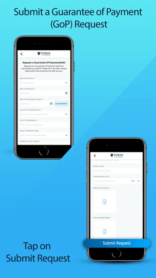 Full description: Tuman Health provides you with access to your medical insurance policy. The main purpose of this application is to enable insured members to submit claims, request guarantees of payment, and find a hospital.