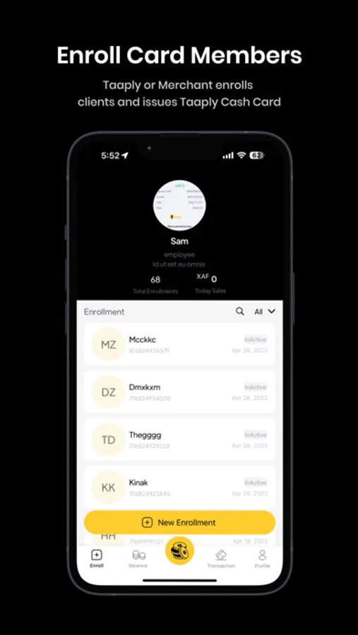 Businesses can enroll new Taaply Cash Card customers. Customer who wish to have their change returned in Taaply Cash card can purchase the Card and have their change returned to their card instead.
