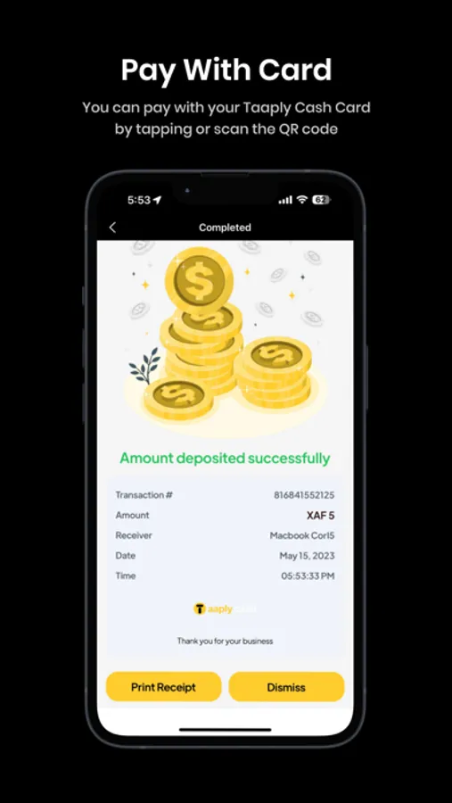 "Send, receive, and manage money effortlessly with Taaply Cash App. It's the simplest way to pay friends, pay bills, and make secure transactions. Instantly send money to anyone with just a few taps. Get a Taaply Cash Card to spend your balance anywhere. With Cash App, your financial transactions are fast, secure, and convenient. Join thousands of users who trust Taaply Cash App for all their money needs."