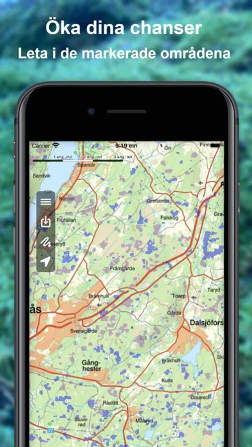 Om du har problem med dålig mottagning i skogen så kan du ladda mindre delar av kartan till telefonens minne innan svampturen. Kantarellområdena ligger redan i telefonens minne så du blir helt oberoende av hur mobiltäckningen är i din skog.
