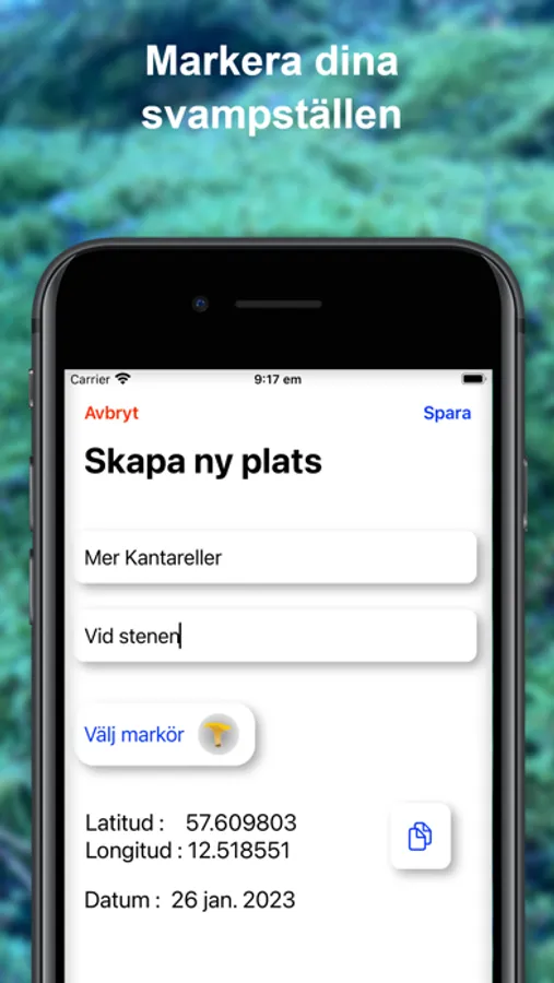 * Markera dina svampställen.