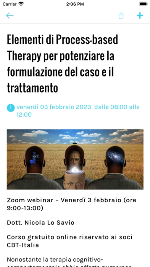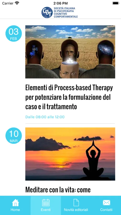 L'App gratuita per tutti i membri della Società scientifica per rimanere in contatto con il consiglio direttivo e costantemente informati sugli eventi organizzati e sulle novità editoriali. Potrai trovare corsi, congressi, convegni e molte altre iniziative organizzate da CBT-Italia o patrocinate, nonché i nuovi libri usciti nel panorama editoriale nazionale.