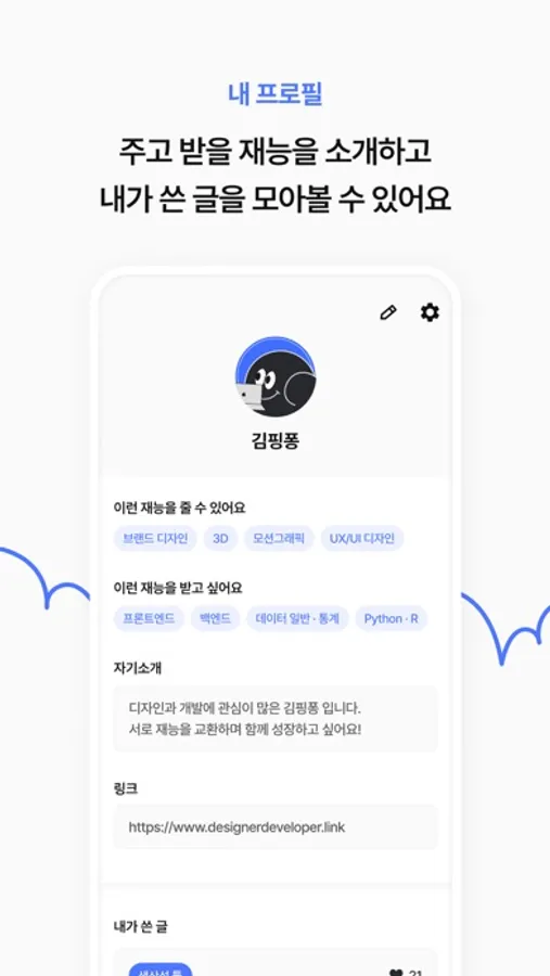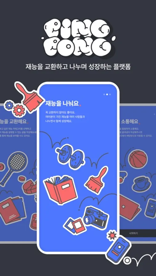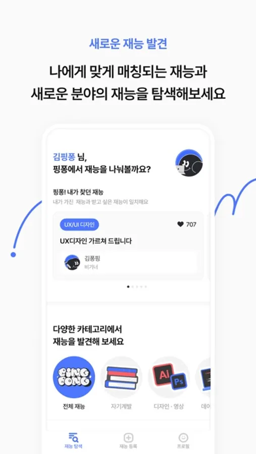 “핑퐁"을 이용해 새로운 재능과 스킬을 습득하고, 서로가 소유한 재능과 스킬을 공유해보세요!