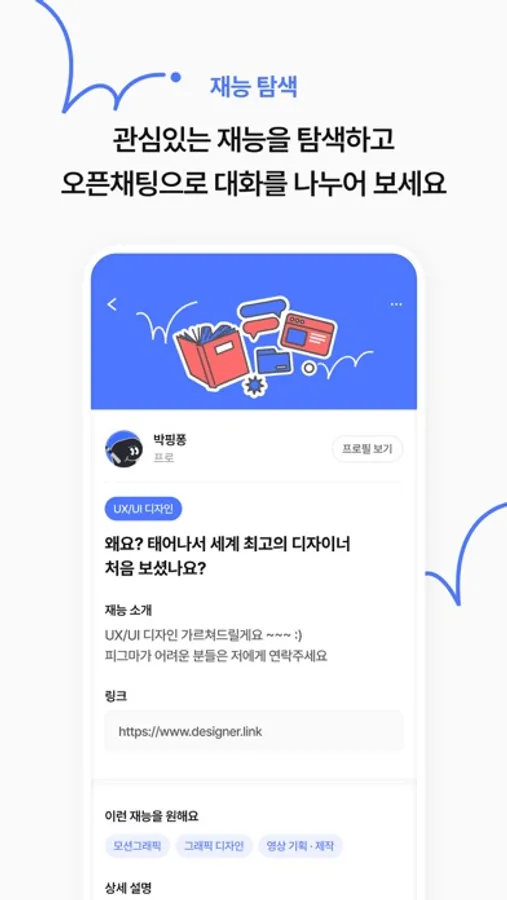 - 관심 있는 재능의 카테고리를 통해 여러 유저의 재능을 탐색할 수 있습니다.