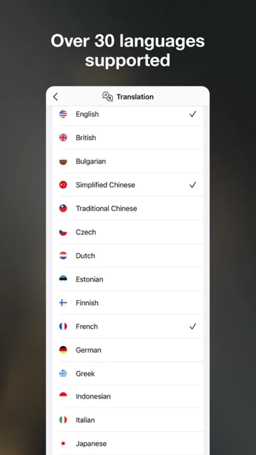 - Over 30 languages supported: Our app covers a wide range of languages, making it easy for you to communicate with anyone in their native language.