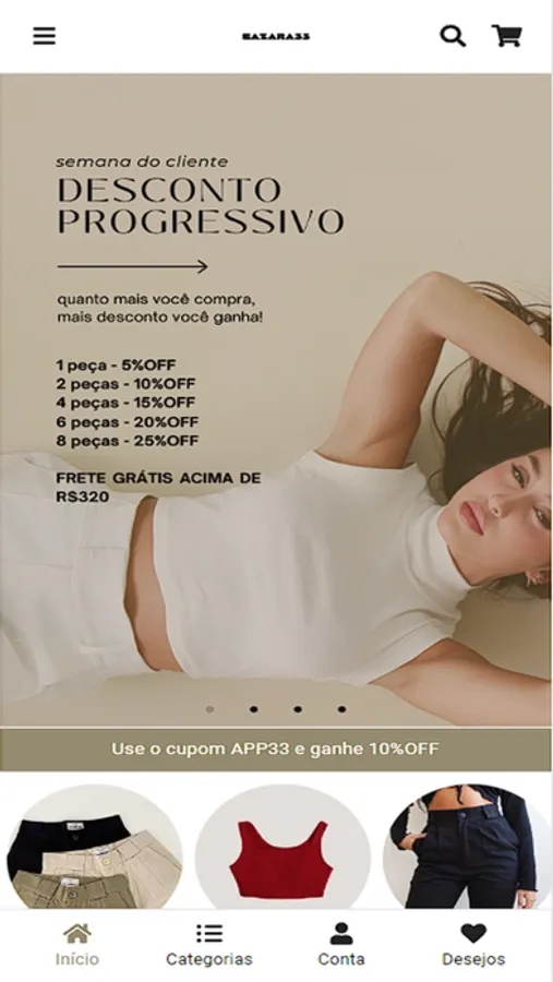 Também oferecemos uma moda circular, onde temos uma parte do site desenvolvida apenas para nossa curadoria vintage de peças seminovas! Baixe o App e confira.