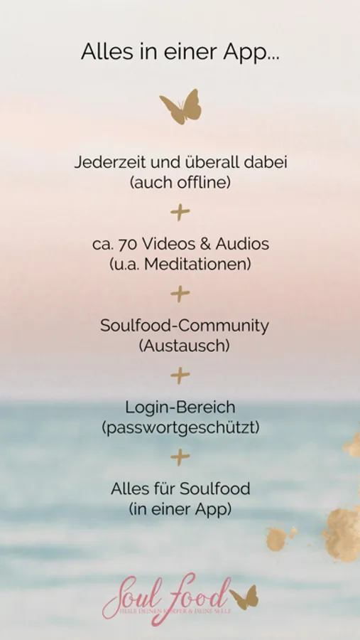 Die Soulfood-App ist ab sofort Dein ständiger Begleiter und unterstützt Dich mit allem was Du brauchst, damit Du ab sofort nicht mehr alleine bist mit deinem Leidensthema.