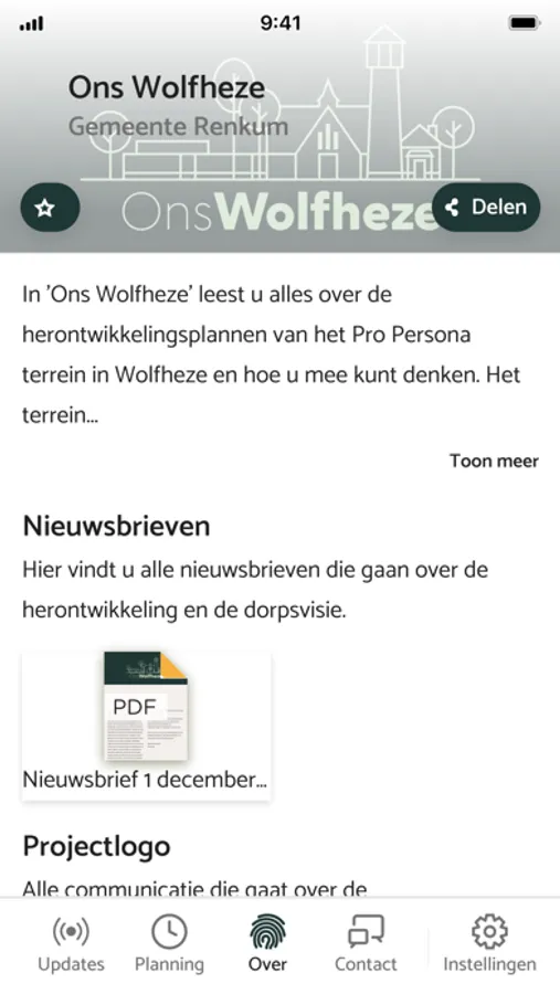 Wilt u graag op de hoogte gehouden worden van alle plannen die gaan over de herontwikkeling van het Pro Persona terrein in Wolfheze en hoe u mee kunt denken en doen? Download dan de app! Alle recente informatie over de herontwikkeling staat hier op één plek en u kunt uw mening geven over belangrijke onderwerpen. Zo bent u altijd op de hoogte en kunt u gemakkelijk documenten terug vinden. Ook vindt u hier informatie over: