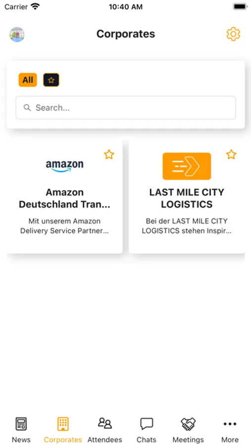 Event app: Overview of conference program, commenting & liking; networking opportunities, find participants, speakers and exhibitors, schedule appointments and meet via video calls directly within the platform.
