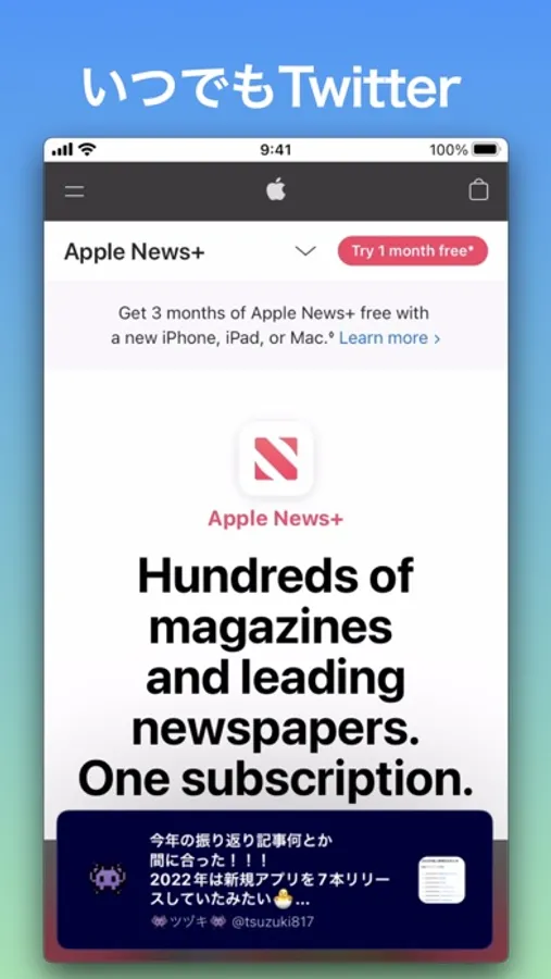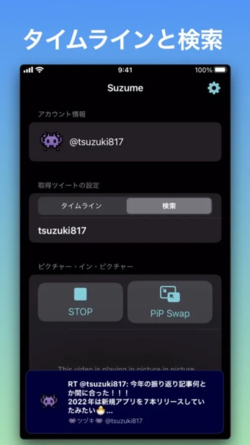 「すずめ」はピクチャーインピクチャーの機能を使ってツイッターをどのアプリを使っていても見ることができるアプリです∧( 'Θ' )∧