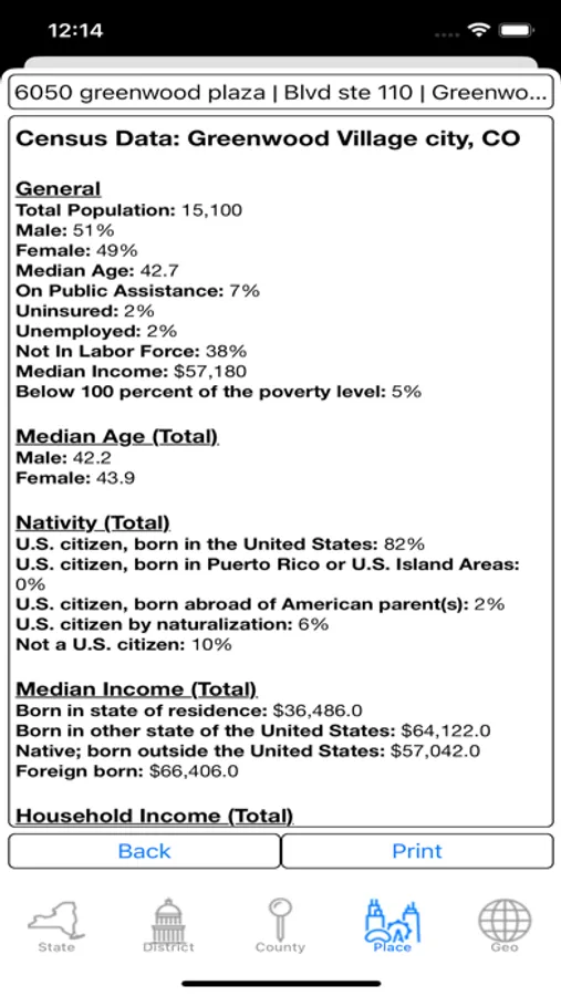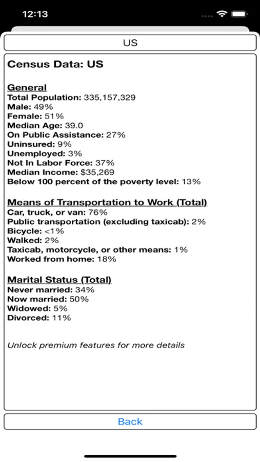 CensusTrack50 gives you easy access to the U.S. Census Bureau's data sets. You can find demographics by state, county, congressional district and city. In-app purchases let you see more data with additional features. Census data available are population, age, uninsured, unemployment, income, poverty and more!