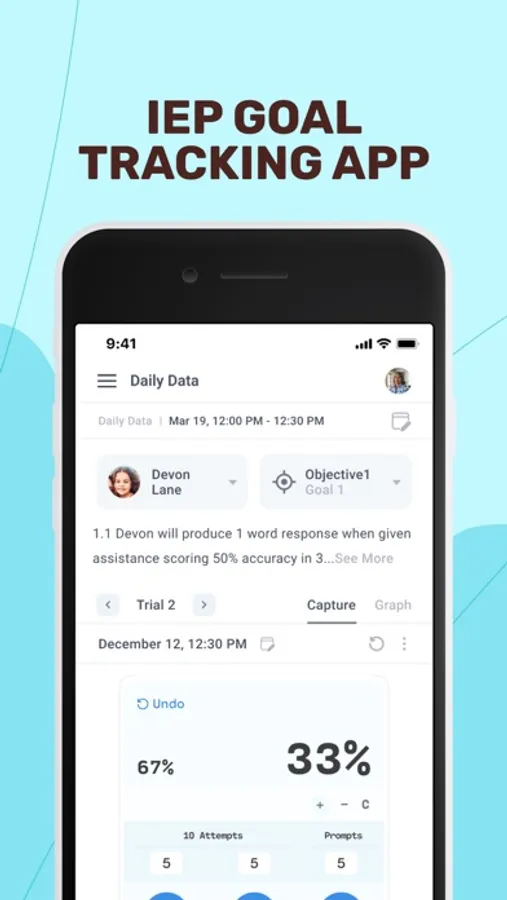 1. IEP Goal Tracking - collect data on IEP goals with a single click. 10+ data types to choose from