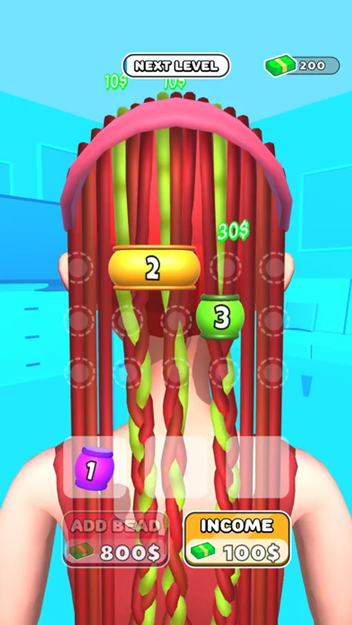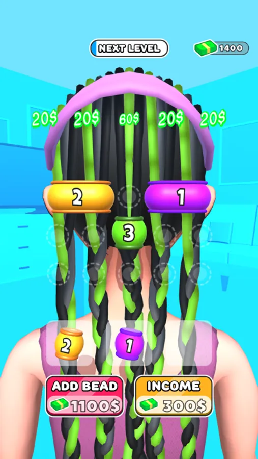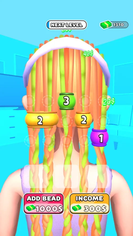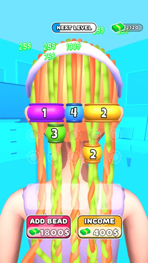 Braid the hair as you wish! Put beads on the hair and merge them to choose your style in this game!