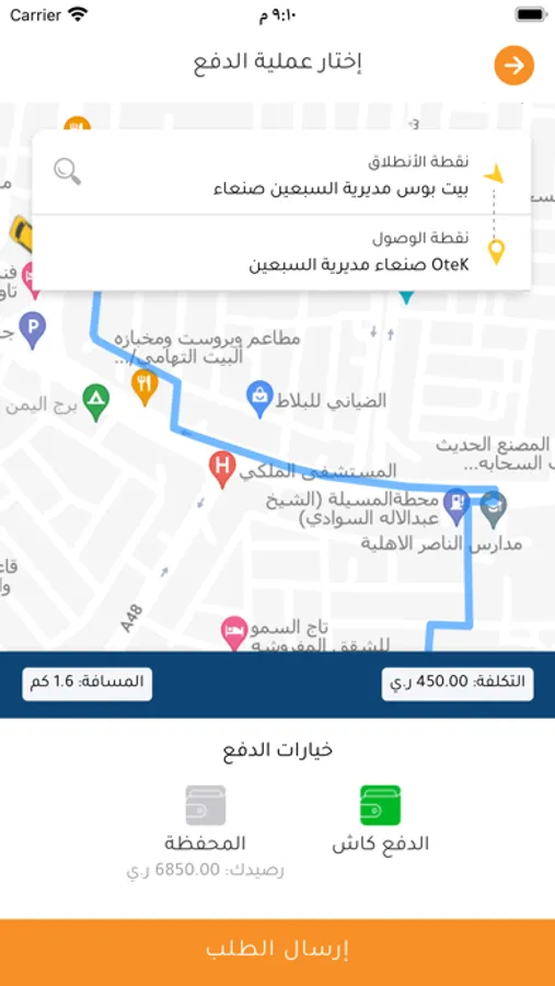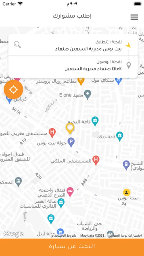 يجب ان توافق على فتح GPSليتم تحديد موقعك في خرائط جوجل ويجب ان تكون فاتح للأنترنت وبعدها يجب عليك تحديد موقعك الحالي وإدخال المكان الذي تريد الذهاب إليه (وجهتك) وبعدها اختيار نوع السيارة التي تريد ان تبدا مشوارك معه من سيارة اجرة، سيارة خصوصية، سيارة VIP وبعدها سيتم عرض وجهتك نقطة الانطلاق ونقطة الوصول وعدد كيلومترات كمسافة الرحلة المطلوبة. بعد اختيار نوع السيارة سيتم عرض واجهة اختيار لطريقة الدفع التي تفضلها لطلب الرحلة اما دفع كاش او عن طريق المحفظة وسيتم عرض السعر والمسافة التقريبية المطلوبة منك قبل بدا الرحلة علما بان السعر والمسافة قد تقل او تزداد حسب الرحلة وعدد الكيلومترات الفعلية التي قام بها السائق.