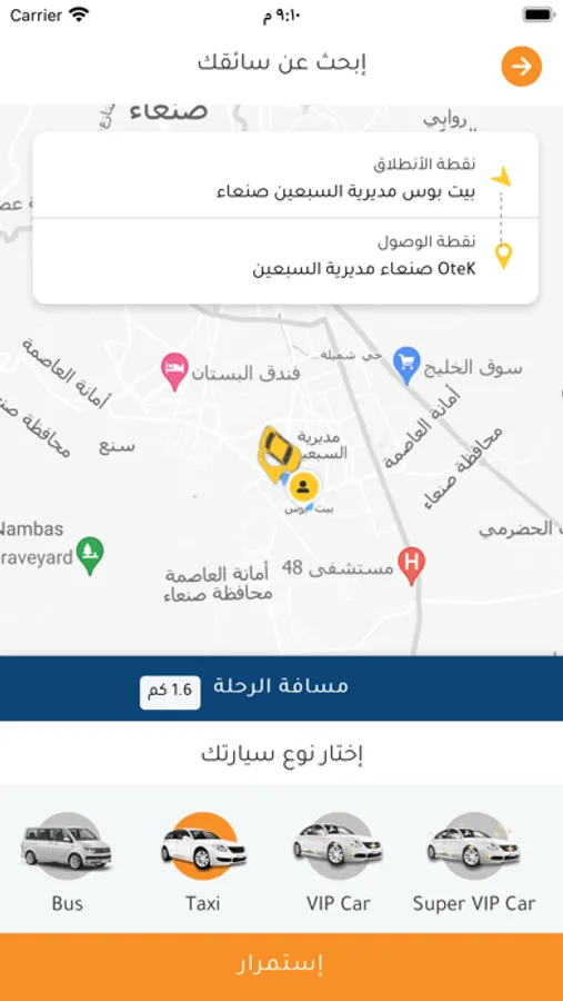 نحن ملتزمون بسلامتك في جوماكس تاكسي. لقد وضعنا معيار أمان لمساعدتك على الشعور بالأمان في كل مرة تركب فيها السيارة. ابحث عن رحلة من أي مكان في صنعاء.