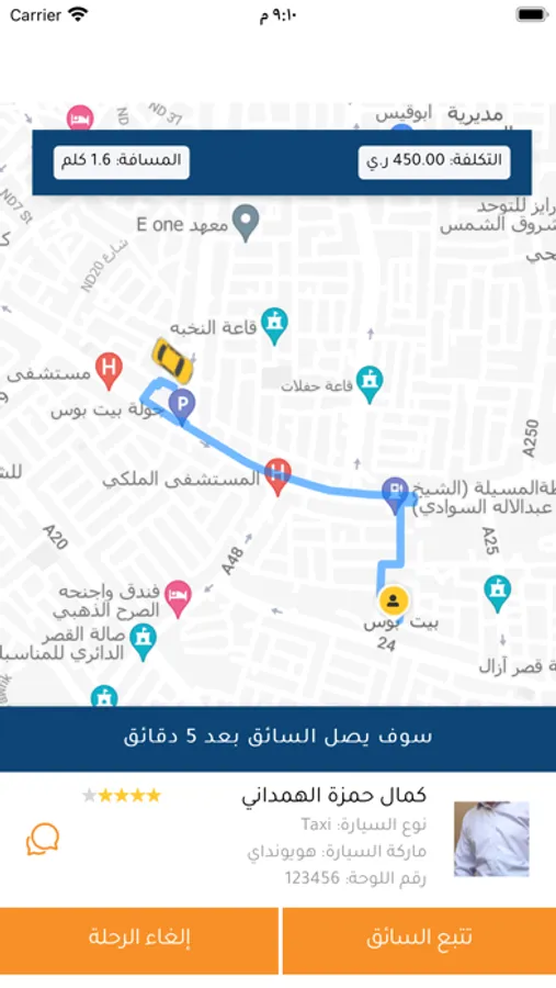 مع تطبيق جوماكس تاكسي ، يمكنك الاطلاع على تقدير السعر والوقت وعدد الكيلومترات المتوقعة مقدمًا قبل بدء الرحلة. علما ان السعر والوقت وعدد الكيلومترات الافتراضية قد تزداد او تقل حسب المشوار والكيلومترات التي تحرك بها السائق فعليا.
