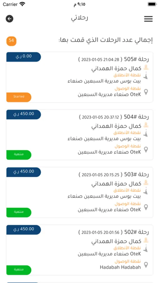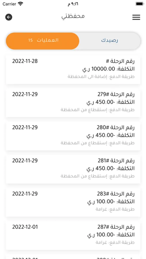 يستطيع الراكب تصفح الرحلات الذي قام بها ورفع تقرير على اي رحلة في حال تم فقدان محفظة على سبيل المثال.