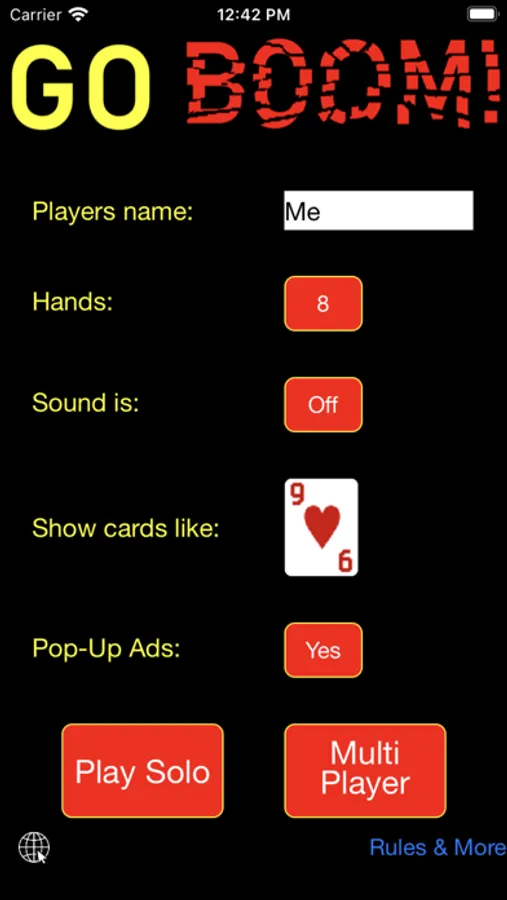 Go Boom! is a classic card game for four players and the objective is to win by being the first player to ged rid of all your cards in a similar way to Wot, Uno etc.