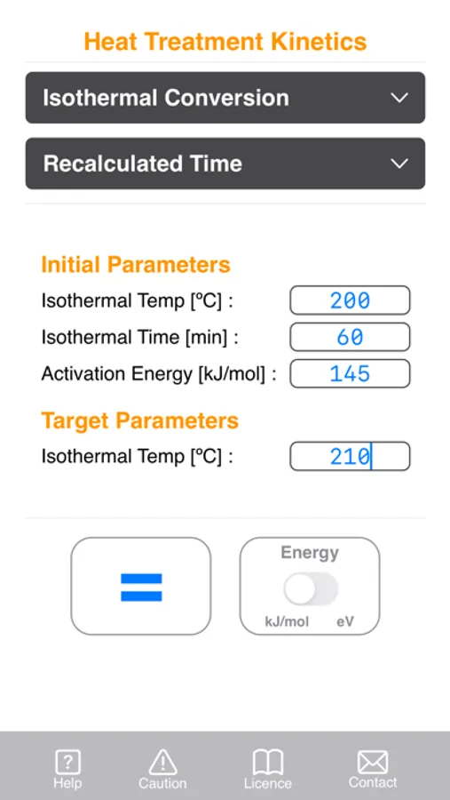 The target parameters are more specifically calculated using the well known Arrhenius equation (isothermal, non-isothermal and combined). The basic model is also known as Hollomon & Jaffe. While the Lite version of the App can calculate isothermal parameters the Pro version can perform isothermal, non-isothermal and combined, without Ads.