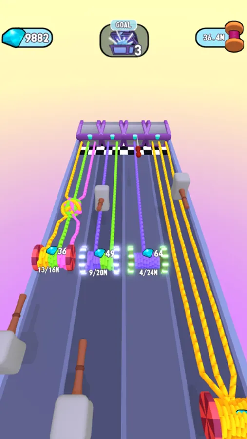 Merge the spools and make them better! Spool the longest ropes and be careful with the obstacles. Untie the knots on colorful ropes and reach to the end to win the prize.