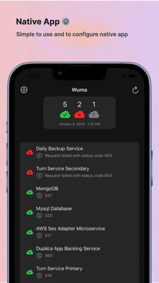- to see the status of your services monitored by "Uptime Kuma" in an iOs WIDGET.