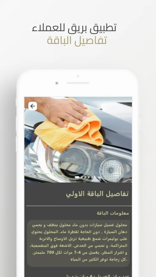 We offer vehicle owners an external car wash service using specialized detergents without the use of water. We provide the service at the time and place determined by each customer by specifying the location of the vehicle and the required washing time, as the company’s technician goes to the vehicle’s location and washes it from the outside only without the need for the presence of the customer, who He receives a notification that the technician has done the washing with the customer’s full right to evaluate the level of service every time specialized materials are used for polishing sheet metal, glass and car tires. on vehicle parts.
