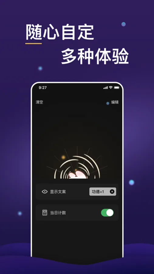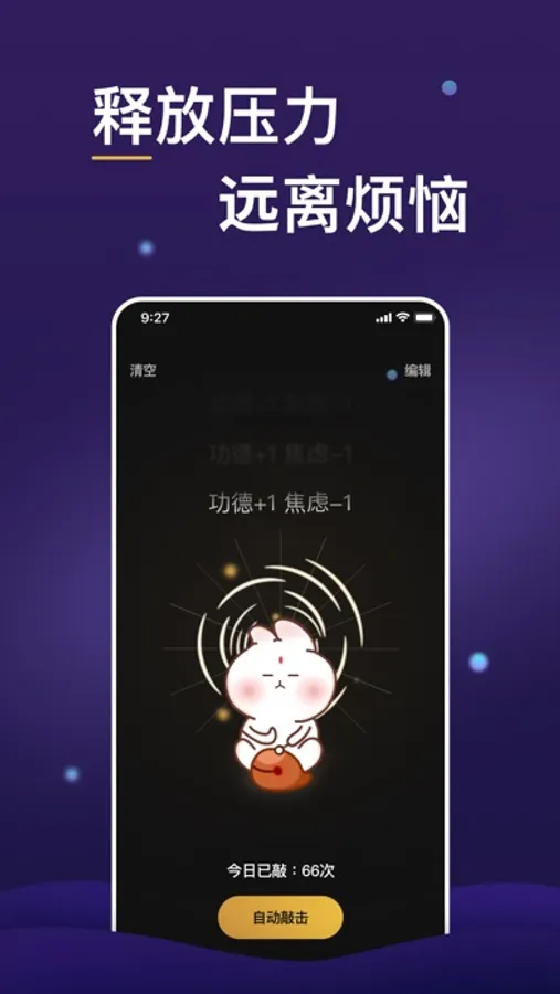 - 悬浮文字:功德+1,焦虑-1,随心自定义