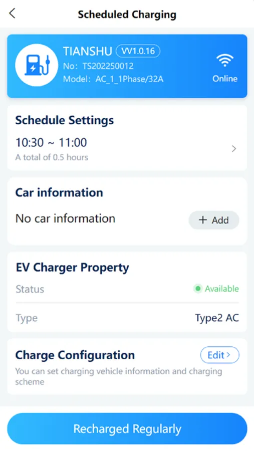 T-home Charging是一个为家庭电动汽车充电提供快速、可靠、方便的应用。我们的应用程序和数字平台允许您使用手机轻松绑定家庭充电设备。我们提供智能wifi连接单元,提供即插即充、定时充电、刷卡启动,APP启动充电方式,让您通过应用程序完全了解和控制充电数据。我们的所有设备与应用都易于使用且安全,并具有动态负载管理功能,以确保您家的电力供应不会过载或受损。