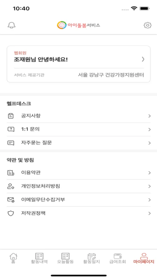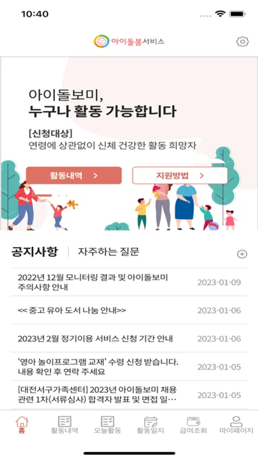 아이돌보미가 보다 쉽고 편하게 돌봄 활동을 관리할 수 있는 아이돌보미 전용 앱입니다.