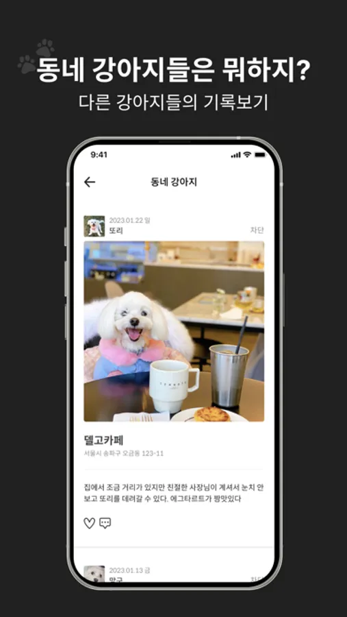 우리집 강아지와의 추억들을 지도에 기록 할 수 있어요!