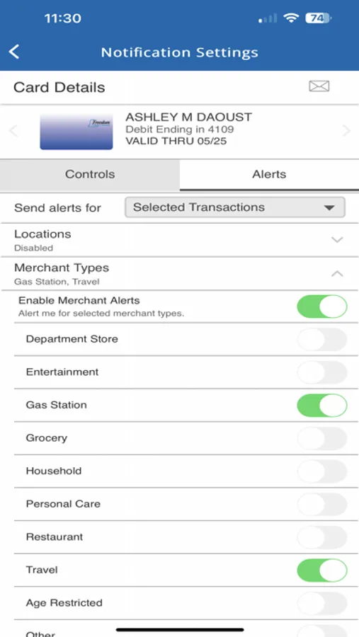 • Set alerts and controls on all of your Freedom Credit Union cards.