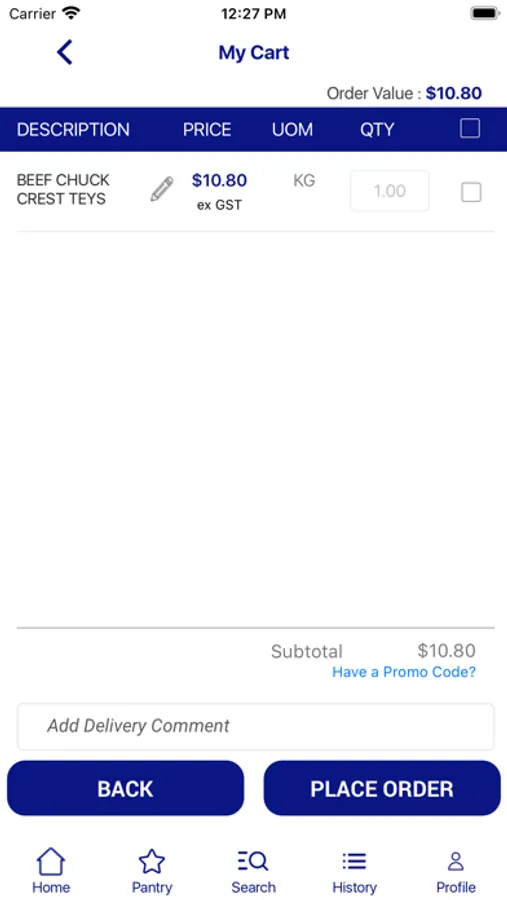 You can quickly and easily select your pantry lists, select the items you want and place an order in seconds. Use our pantry list, or create your very own. We’ve also included the convenience of re-ordering from your previous orders.